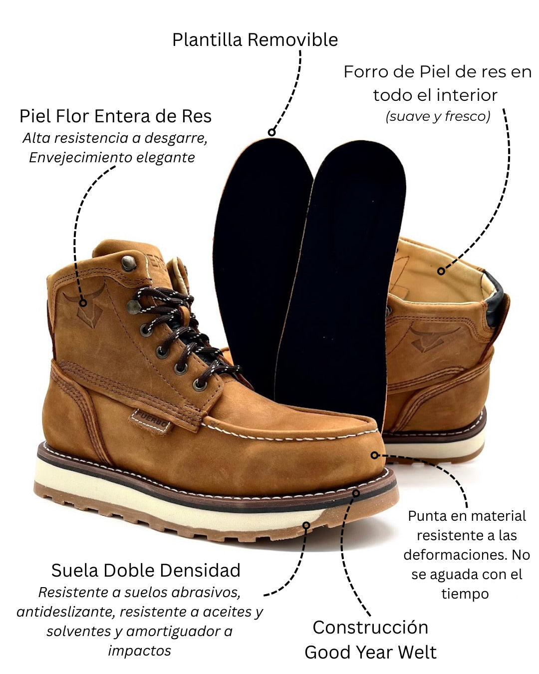 Handcrafted in León, GTO | Goodyear Welt | Composite Safety Toe | Full Grain Leather | Slip & Oil Resistant | Resoleable